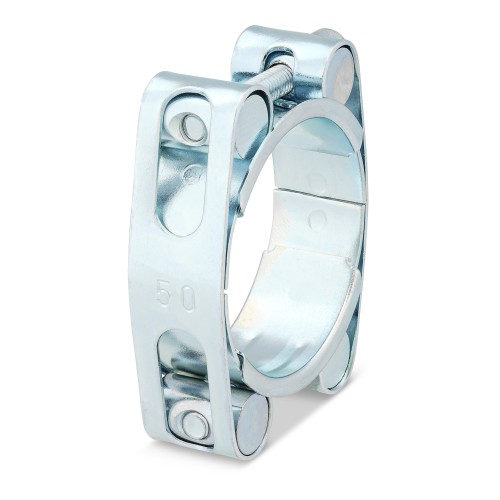 Una abrazadera de doble banda muy resistente y resistente. También disponible en versión de doble tornillo para mayor fuerza de sujeción. Disponible en versión estándar y en acero inoxidable 316/S50.